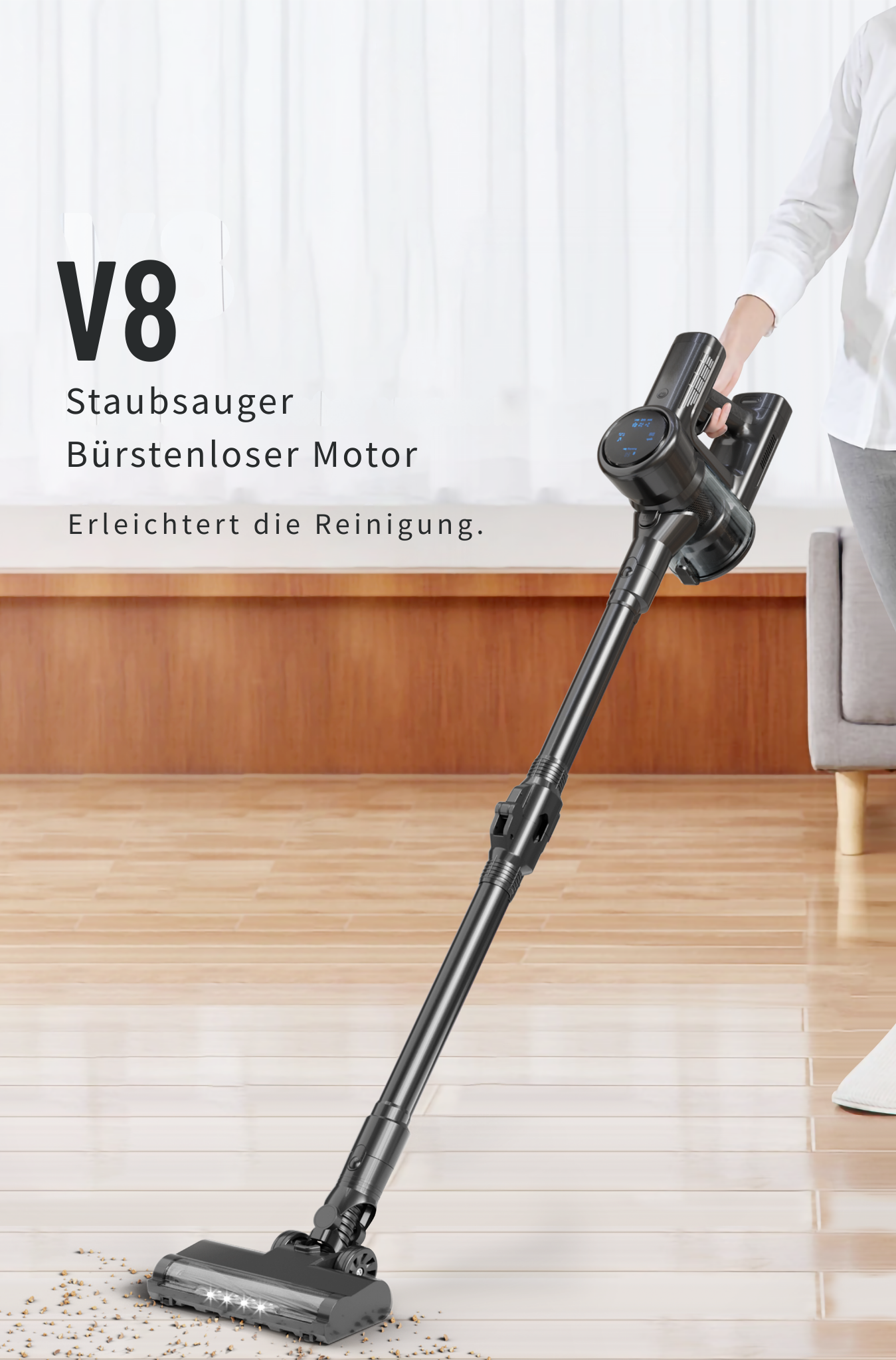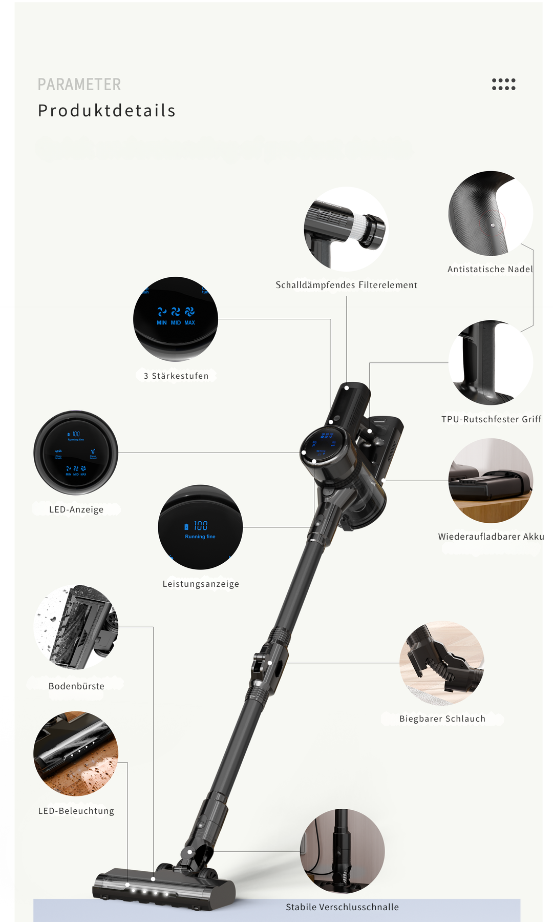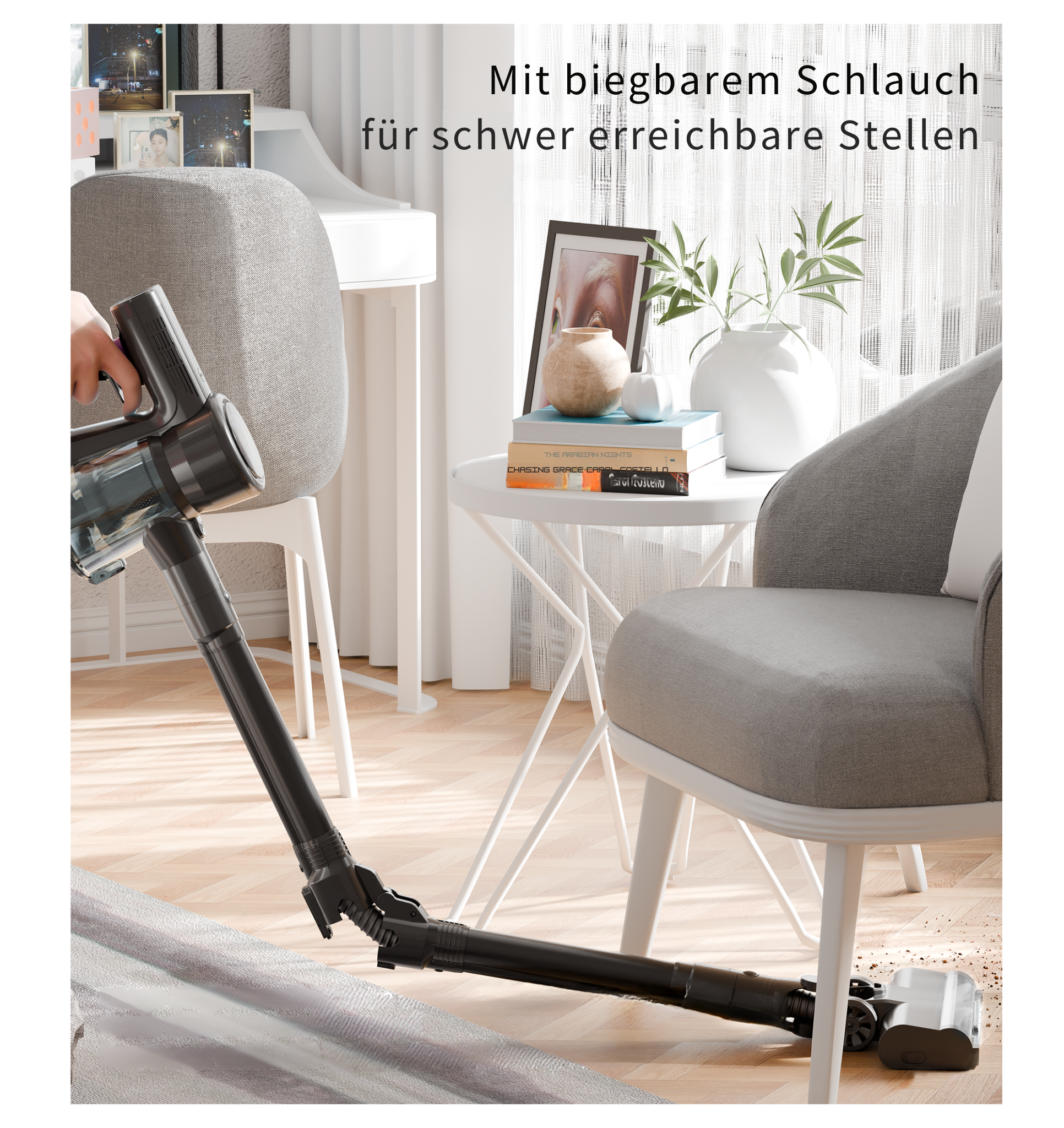 Kraftvolle Saugkraft, biegbarer Schlauch, lange Akkulaufzeit – für alle Bodenarten und Polster